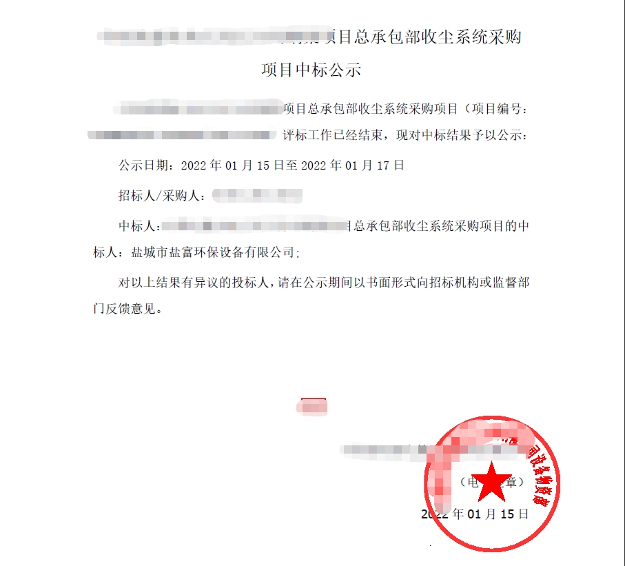 • 開年傳喜訊,近日從招標(biāo)單位傳來好消息,鹽富環(huán)保成功中標(biāo)又一大型砂石骨料項(xiàng)目總承包收塵系統(tǒng),實(shí)現(xiàn)開門紅。